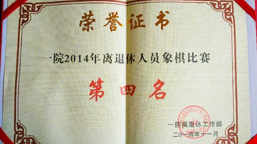 總醫(yī)院榮獲“一(yi)院2014年(nian)離退休人(ren)員(yuan)棋牌類比賽”中(zhong)象棋比賽團(tuán)體(ti)第四名(míng)