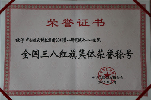 巾帼建(jian)功英飒爽,服務(wu)航天譜新(xin)曲。2014年(nian),在(zai)研究院領(ling)導(dao)的(de)支持下,北京航天總醫(yī)院代(dai)表集(ji)團(tuán)公(gōng)司參加(jia)全國(guo)三八紅(hong)旗單(dan)位評選,通(tong)過(guo)認真準備(bei),提煉經(jing)驗(yàn),彙總材(cai)料,積極迎評,最終榮獲“全國(guo)三八紅(hong)旗集(ji)體(ti)”稱号。