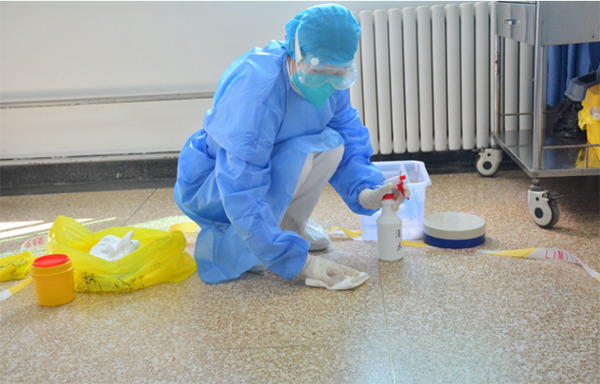 演練模拟護士在(zai)配(pei)置化療藥物(wù)過(guo)程(cheng)中(zhong),化療藥物(wù)安(an)瓿掉落在(zai)地緻藥物(wù)洩露後(hou),當班護士立即呼叫,啓動(dòng)應急預案。演示如何啓用(yong)備(bei)用(yong)外溢包,評估污染部(bu)位、标明污染範圍、放置标識牌、限(xian)製(zhi)無關人(ren)員(yuan)進(jin)入、做好箇(ge)人(ren)防護、處理(li)安(an)瓿玻璃碎片、可(kě)吸(xi)收棉墊吸(xi)幹藥液并徹底進(jin)行污染處理(li)、正确進(jin)行醫(yī)療垃圾處理(li)的(de)整箇(ge)過(guo)程(cheng)。